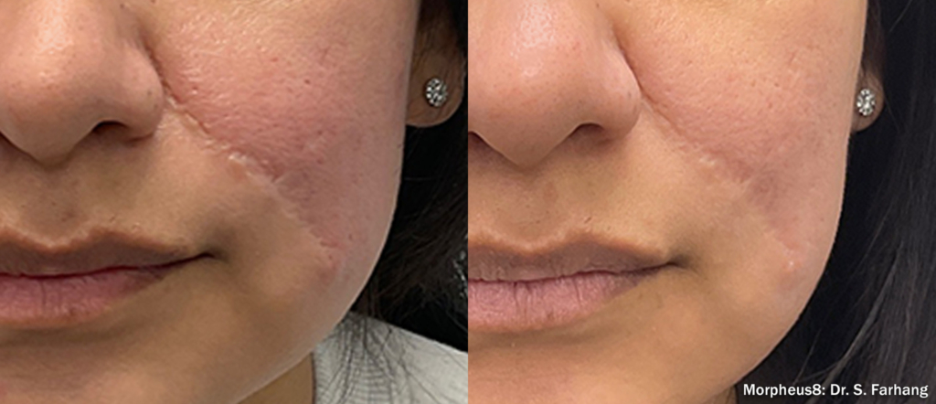● Scar Improvement: Morpheus8 can significantly improve the appearance of acne scars, surgical scars, and other types of scars.
